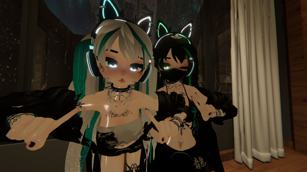 Base - Ragga#3124, Head - Starlynn#8980, GoGo Locomotion, Jacket - Kiri, Hair Textures, Pigtails (edited by Me ~ Length/Weightpaint do not re-use) - bruisedpeach#5644, Pyjamas/Face Mask (Nitro) - Cupkake, Braces - Just Erindale, Horns - Lunarai, Headphones - Blossom#2332, Belly Ring - Velvet, Bracelet - avary#7795, Necklace - м.#7777, Shoes - Razor, Socks - Holoexe, Back Tattoo - RiggaTony#0001, Bangs Full - BaegAm#6974, Bra - vampi, Face Piercings - Milky Mommy#6969, Kitty Ears/Tail - Nyakoh, Hat - Hayweee#1999, All items not listed have been made by me, please do not take